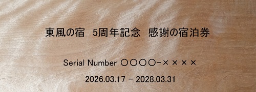 おかげさまで東風の宿は5周年を迎えました